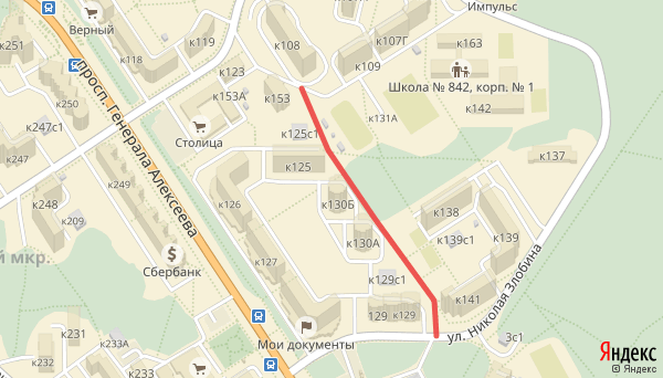 Это дорожка внутри микрорайона — она проходит возле корпусов 129, 141, 130А и Б, 125. Здесь заменят плитку, поставят скамейки, посадят новую растительность. Необходимость ремонта объясняют тем, что плитка на существующих дорожках «находится в неудовлетворительном состоянии и не отвечает современным требованиям», трава вокруг «местами отсутствует», а при этом есть «достаточное количество» тропинок, протоптанных людьми вне дорожек. Скамьи и урны тоже в неудовлетворительном состоянии и «требуют полной замены». Цель благоустройства, как сказано в документации на проектирование — упорядочить дорожки и тропинки, сделать удобный проход, разделить пешеходные и велосипедные потоки, а также сделать гостевые парковки «у входов» (видимо, на пешеходную дорожку). А в перспективе это место может стать активной зоной отдыха. Разработку проекта пешеходной зоны заказал «Жилищник района Матушкино», стоимость работ — 1,8 миллиона рублей. Проект сделают к концу года. Тогда станет понятна с