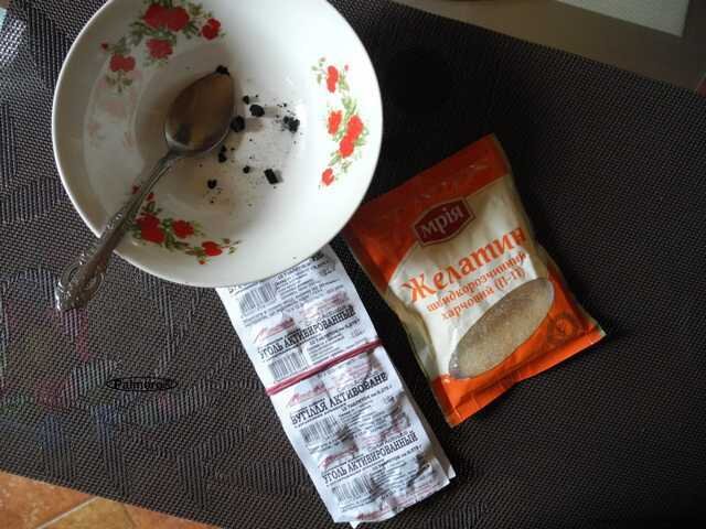 Маска из желатина и активированного .Что она делает ? Очень хорошо очищает поры . Ингредиенты : Одна чайная ложка воды , пол таблетки активированного угля и пол ложки желатина . Приготовление: Смешиваем размельчиваем активированный уголь с желатином и заливаем теплой водой. (теплой !!не кипятком ) Полученную субстанцию наносим на проблемные зоны лица (лоб ,нос ,подбородок и т д) .Через 10 секунд наносим 2 слой . Слоев можно наносите больше. Ориентируйтесь на ощущения .Чем тоньше слой тем легче будет снять маску .После высыхания маски-пленки через 15-20 минут снимаем желатиновую пленку .После снятия лучше всего сузить очищенные поры тоником или холодным умыванием .