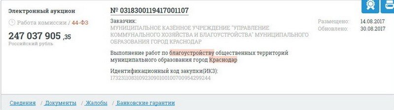 Активистами ОНФ направлена жалоба в центральный аппарат ФАС России, с просьбой дать правовую оценку действиям заказчика - МКУ "Управление коммунального хозяйства и благоустройства" г. Краснодар.