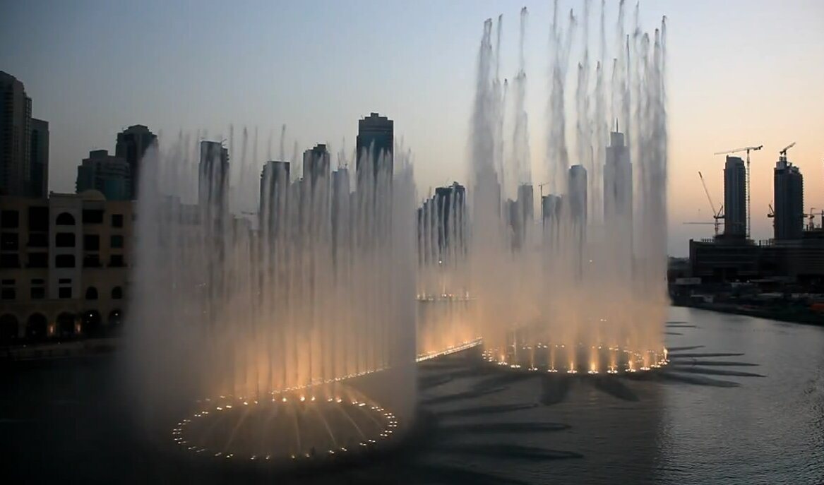 Дубайский музыкальный фонтан — высоченный, дорогущий и, пожалуй самый красивый из всех "танцующих фонтанов" в мире, поистине феерическая композиция из светы, звука и воды. Он расположен в искусственном озере площадью 12 га, в центре Дубая, рядом со знаменитым небоскребом Бурдж-Халифа. Дубайский фонтан на сегодняшний день — один из крупнейших в мире: 275 м в длину, а высота струй воды достигает 150 м. Ежесекундно фонтан поднимает в воздух более 83 000 л воды. Подсветку фонтана осуществляют более 6 тысяч фонарей, двадцать пять цветных прожекторов . Лучи света, поднимающиеся от фонтана, видны на расстоянии 30 километров. Внутри конструкции установлены специальные «водяные роботы» — шутеры, которые под давлением выталкивают воду вверх, а многочисленные прожекторы и переливающийся свет создают эффект «танца воды». В репертуаре - классическая, арабская и поп-музыка, и под каждую из мелодий фонтан исполняет разный танец. Посмотреть на фонтан ежедневно собираются толпы местных жите