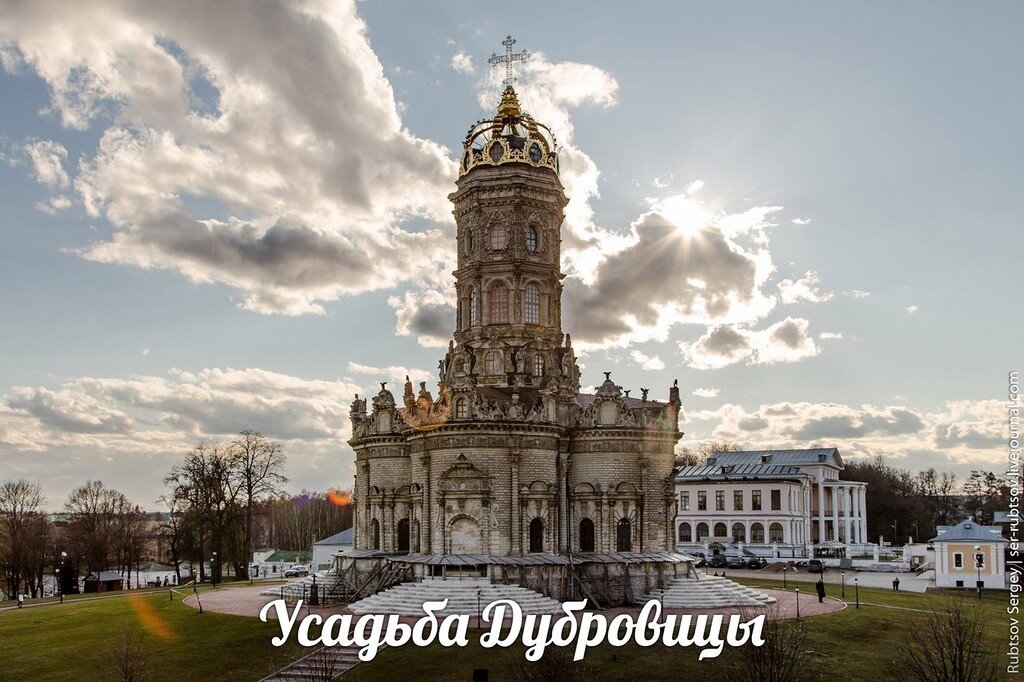 Иногда я вижу фотографию какого-нибудь места в интернете и не верю, что такое может находиться в какой-нибудь паре часов езды от дома, зато появляется четкая цель обязательно там побывать. Одним из таких мест для меня оказалась усадьба Дубровицы. Усадьба Дубровицы расположена в пригороде Подольска на слияние двух рек Десны и Пахры: Первое упоминание об усадьбе относится к 1627 году. Данным место владел боярин Иван Морозов, который после пострига в монахи, завещал свое имение дочери. Наследница была замужем за князем Голицыным. В 1688 году хозяином становится Борис Голицын, который был сподвижником Петра I. Голицыны обосновались здесь более, чем на 100 лет. После них Дубровицами владели фавориты Екатерины II Григорий Потёмкин, а после Александр Дмитриев-Мамонов и его наследники. Однако, именно с именем Бориса Голицына связано строительство здесь удивительного по своей архитектуре храма, который представлял собой основание в виде креста, над котором возвышалась высокая ажурная башня в ст