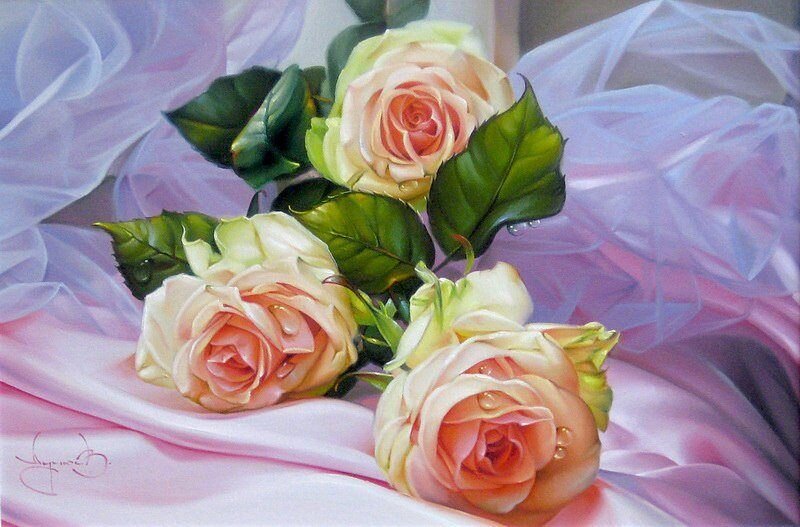 В эпосе народов разных уголков нашей планеты встречаются упоминания об этом прекрасном цветке. Родиной этого волшебного растения считается Персия, в этом государстве роза имела другое имя — «гюль». Именно жители Персии вывели, культивировали розу, создали разные её расцветки и формы. Этот восхитительный цветок быстро завоевал популярность во всем мире, благодаря своему неповторимому аромату и изяществу. Не сложно догадаться, что в древней Греции роза стала атрибутом прекраснейшей из богинь, богини любви Афродиты. Пеннорожденная богиня, согласна мифам, принесла с собой в мир и это благоухающие чудо — розу. Роза непременно сопровождала собой новобрачных и украшала собой венец невесты. Ни один цветов не был окружен таким количеством легенд и символов, как она. Красота, прекрасная и недолговечная, сияния любви и нежности, символ бесконечности — это все о ней. Не удивительно, что и современные живописцы попадают под её обаяние, невозможно прикоснуться к этому трепещущему чуду,