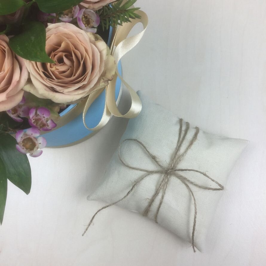 На этот раз мы решили показать, как вручную сшить быстро и просто подушечку для колец. Эта модель универсальная, т. к. небольшая по размеру и сшита из нейтральной ткани молочного цвета — двунитки. А на аккуратный её пошив требуется всего-то 20 минут. Для изготовления подушечки вам понадобится: - ткань двунитка