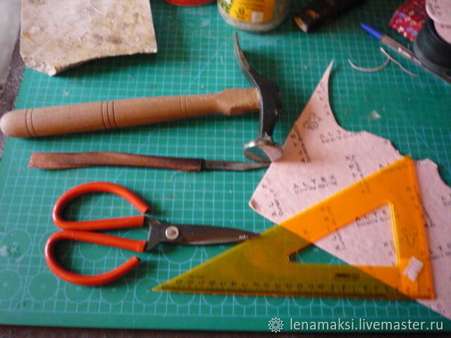 Возникло очень много вопросов у моих коллег и учеников по изготовлению стельки с супинатором. Я решила разместить свой первый мастер-класс и закрыть эту тему. Надеюсь, информация будет полезной для многих людей, увлеченных изготовлением обуви... Супинатор — внутренняя деталь низа обуви, прикрепляемая к стельке, или между стелькой и полустелькой, предназначенная для уменьшения нагрузки на свод стопы и формоустойчивости подошвы. О детской обуви писать не буду, так как это — отдельная тема. Итак, для работы нам понадобятся: обувной картон, толщина 2 мм и 1 мм; супинаторы, 2 штуки; молоток; клей наиритовый; ножницы сапожные с хорошими мощными лезвиями; нож брусовочный или макетный (канцелярский не советую, не безопасно); линейка и карандаш либо ручка. Супинаторы обычно имеют изгиб, который нужно отбить молотком (я делаю это на сапожной лапе). Не пугайтесь! Это достаточно легко! Пару-тройку хороших ударов и все! Супинатор должен идеально, без зазоров, лежать на подошве. Вот фот