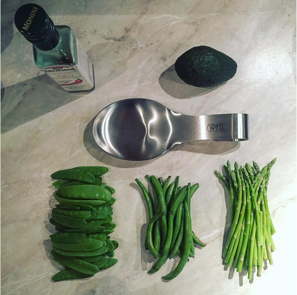 Кстати, если вспоминать про калорийность - то это меньше 100 кКал. В основном - углеводы и белки. Ингридиенты: стручковая фасоль, зелёный горошек (можно в стручках, можно консервированный), спаржа. Всего по чуть-чуть, в равных пропорциях. Способ приготовления: Вскипятите воду в чайнике. Отварите в разных водах горошек, фасоль, спаржу. Я всё готовила в одном ковше по очереди, меняя воду. Воду менять нужно для того, чтобы при варке, например, фасоль или спаржа, не пропиталась ароматом горошка и наоборот. Чтобы каждый ингридиент сохранил свой аромат и вкус. По времени варки - зависит от ингридиентов