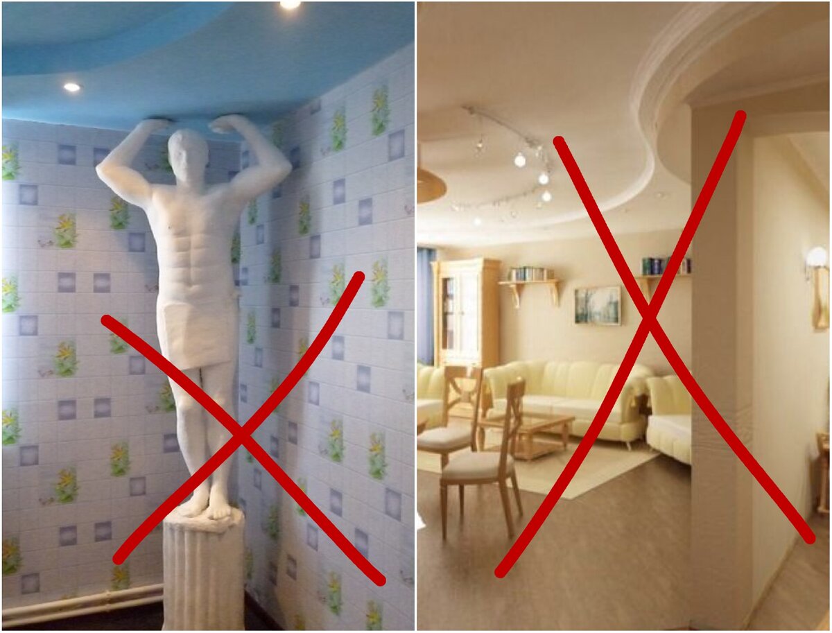 Сногсшибательный интерьер сделать не сложно и в этой статье я расскажу о том как сделать зубодробительный, душераздирающий и убивающий наповал интерьер. Сегодня поговорим о самых изощренных способах оформления стен, которые гарантированно испортят любой интерьер. В интерьере важно соблюдать баланс, но иногда попадаются люди с особой фантазией. Часто это последователи стиля евроремонт, которые транслируют свое необузданное либидо через интерьерное искусство. Ниша здесь ниша там Случается, что во время ремонта удается организовать нишу в стене. Такое решение идеально для ванных комнат, поскольку места для хранения там всегда нужны. Одно дело когда ниша - необходимость и совсем другое когда ради организации ниши сносят фрагменты капитальных стен. Такие интерьеры выглядят как сыр Маасдам. Последователи евроремонта готовы даже нарастить стены: все для того, чтобы появилась желанная ниша. Неважно, что пространства станет меньше - главное организовать пару бесполезных углублений в стене. На
