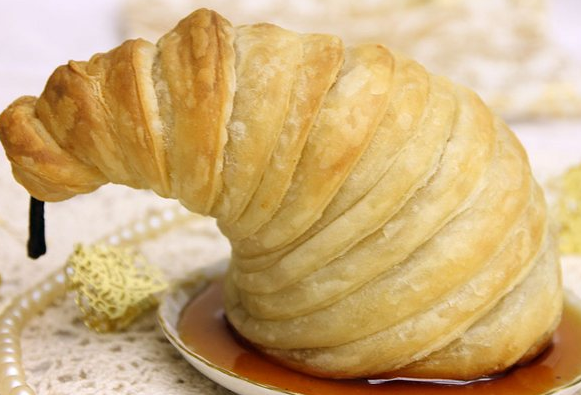 Груша, которую запекли в тесте, способна не только на украшение праздничного стола, но и отлично подойдет как дополнение к романтическому ужину. Рецепт простой, но очень вкусный! Время приготовления 30 минут. Ингредиенты 400 гр. слоеного теста (замороженного) 200 гр. сахара 4 груши 2 яйца ½ лимона 1 литр воды Щепотка корицы Приготовление Воду закипятим, затем положим сахар, размешаем до растворения, добавим лимон и корицу. Опустим в сироп очищенные от кожи груши. Варим до мягкости, минут 10-15 (зависит от сорта и твердости груш). Вынимаем и остужаем груши. Тесто нарезаем полосками в 1,5 сантиметра толщиной и оборачиваем ими груши, закрепляя на черенке. Смазываем тесто взбитым яйцом, посыпаем сахаром и отправляем в предварительно разогретую до 200 градусов духовку до образования румяной корочки, примерно на 20-25 минут. Десерт готов. Приятного аппетита!