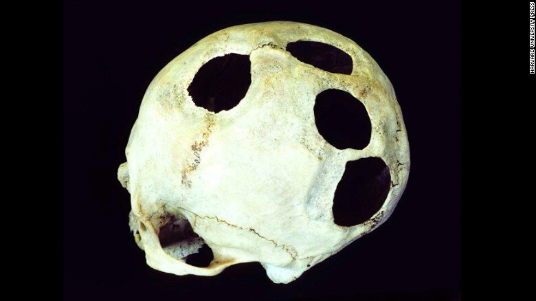 Тысячи лет назад медицина не была точной наукой, и дела так обстояли во всех частях мира. Если говорить прямо, то практикующие врачи вовсю экспериментировали, но, если мы будем подыскивать для этого более — менее культурные слова, то можно сказать, что все творческие виды лечения появились именно тогда. Древние египтяне, например, прописывали такие экозитические лекарства, как кровь ящерицы, мертвых мышей, грязь и заплесневелый хлеб. Они искренне верили, что женщинам при нарушениях либило помогает лошадиная слюна, а римляне, для того, чтобы лечить зубы, регулярно чистили их мочой, которая богата аммиаком. Однако, одним из самых странных способов лечения, описанным в медицинских древних книгах, — если он конечно на самом деле рассматривался, как лечение, — является трепанация черепа, распространенная среди инков, когда в черепе делалось пять и более отверстий хирургическим путем в то время, как пациенты были еще живы. Зачем? Никто до сих пор этого не знает. Первые черепа инков с боле