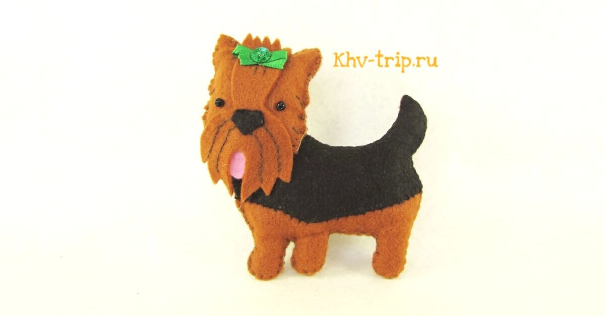 В преддверии Нового Года - года собаки, предлагаю Вам сшить из фетра очаровательного йоркширского терьера ! Такая игрушка может стать елочным украшением, детской игрушкой, или же брелком для ключей!