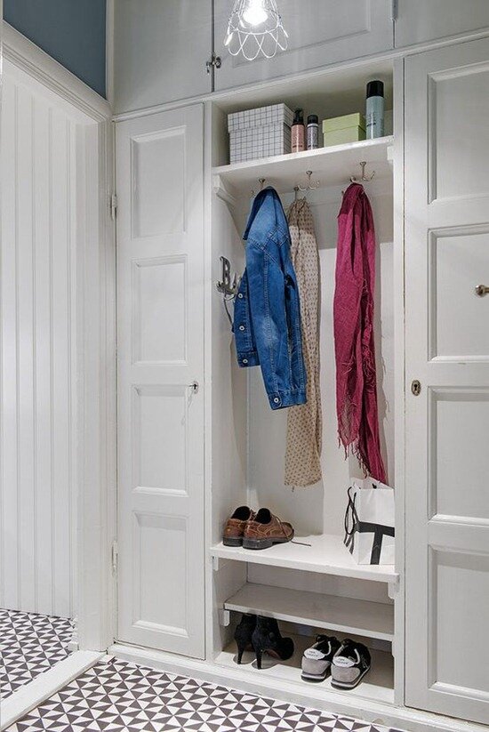 Размер прихожих в большинстве квартир (даже с собственной планировкой) обычно небольшая. Ведь прихожая на то и прихожая, чтобы зайти в нее с улицы, снять верхнюю одежду и обувь, положить сумку и пройти в другие комнаты. Но порой площадь прихожей не позволяет провести и эти манипуляции.Особенно, если в квартире живет большая семья и в прихожей скапливается уж очень много верхней одежды, обуви и других вещей. Как все это уложить и спрятать в маленькой прихожей, при этом оставив максимум свободного пространства, мы расскажем и покажем в этой статье. Скамьи-тумбы Возможно , первое, что пришло вам в голову, это мебель, в которой можно все сложить, а именно скамьи-тумбы. Верно. Этот вид мебели всегда выручает, когда нужно сохранить пространство, но при этом иметь место, где можно все хранить. К тому же, скамьи-тумбы играют роль посадочного места и в этом их еще один плюс. Подвесная мебель Что действительно добавляет прихожей “воздушности” и пространства, так это подвесная мебель. Еще ее мож