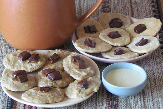 7. Топленое масло - 20 г Инструкция приготовления 1. Заливаем хлопья горячим молоком, как при обычном запаривании овсянки быстрого приготовления. Под крышкой оставляем минут на 10–15. 2. Когда каша слегка остынет, добавляем в нее (предварительно взбитое с солью) яйцо, корицу и масло, размешиваем. 3. На сухую разогретую сковороду выкладываем небольшие оладьи и пропекаем на умеренном огне до золотистой корочки (примерно 2–3 минуты с каждой стороны). 4. Тем временем разламываем на кусочки шоколад (обычно плитка уже разделена на квадратики). Украшаем каждый готовый горячий оладушек отдельным кусочком. 5. Тёплые оладьи со слегка подтаявшим шоколадом идеально сочетаются с чёрным кофе (в качестве десерта) или подаются на завтрак (как альтернатива каше).