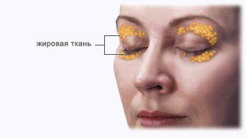 В этом случае нарушаются пути оттока циркулирующей жидкости, поэтому она накапливается на лице и жировая ткань нижних век не является исключением.