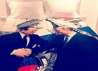 Экс-премьер Италии Сильвио Берлускони приехал в Сочи на день рождения президента России Владимира Путина, отметившего свое 65-летие, и подарил ему вышитый пододеяльник, сообщает РИА Новости. На пододеяльнике изображено рукопожатие Путина и Берлускони на фоне известных достопримечательностей России и Италии — собора Василия Блаженного и Колизея. Информацию о подарке подтвердили в компании по производству постельного белья. По словам главы фирмы Микеле Каскавилла, пошив пододеяльника размера king-size занял около шести часов. Для изготовления постельного белья использовалась машинная печать, а упаковку сделали вручную. — Для нас это большая честь сделать подарок для президента Путина, — отметил Каскавилла.