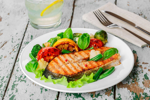 Рыбные стейки промываем, обсушиваем, слегка присыпаем солью и черным перцем. Для более яркого аромата можно сдобрить рыбу щепоткой розмарина или любыми другими сухими травами на ваш вкус. Сбрызгиваем стейки оливковым маслом с обеих сторон и поливаем соком одного лимона. Даем им немного напитаться и укладываем на решетку с углями. Чтобы рыбка пропеклась равномерно, стейки необходимо постоянно переворачивать и следить, чтобы они не пригорели. Как только семга хорошенько подрумянится, можно убирать ее с огня.