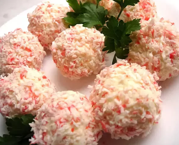 Для того чтобы вкусно готовить, совсем не обязательно тратить много денег на продукты. Рецепт нашей закуски очень прост, а вкус придется по вкусу. Ингредиенты 4 яйца 2 плавленых сырка 8 крабовых палочек 3 зубчика чеснока Соль и черный молотый перец по вкусу Майонез Приготовление Крабовые палочки замороженные натираем на терке и оставляем в холодильнике пока подготавливаем другие ингредиенты. Сырки, чеснок и отварные яйца натираем на мелкой терке, добавляем перец и соль, майонез и хорошенько перемешаем. Из массы формируем шарики и обваливаем их в крабовых палочках. Посыпаем нарезанным зеленым луком и ставим на пару часов в холодильник. Приятного аппетита!