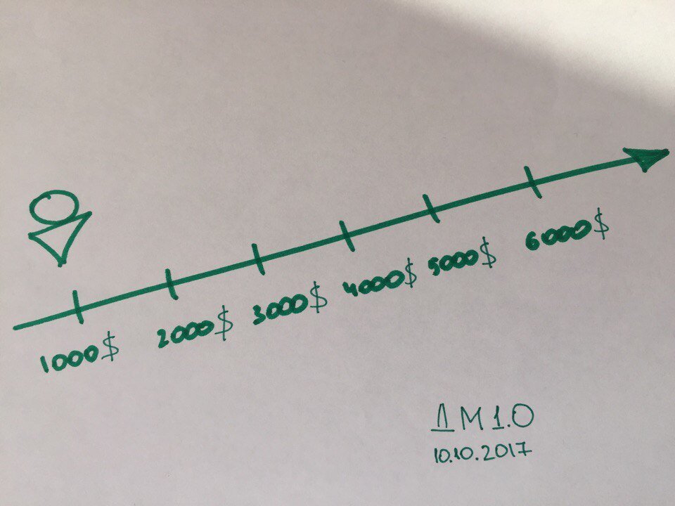 Итак, что делаем? На полу в комнате отмечаем условную линию. Это будет шкала обладания деньгами. • На ней есть начало и конец. В начале ставим отметку (просто можно листики бумаги класть на пол) — это та сумма, которую вы зарабатываете сейчас. Например, 1000 $/мес. • Далее, отмечаем возрастающие суммы, через равные промежутки: 3000 дол; 4000; 5000; 6000; 7000; 8000… В конце шкалы у вас должна быть какая-то большая сумма. • Теперь, стали на старт и прислушались к ощущению в теле. Вы стоите на своей текущей сумме — 1000 $/мес. Как ощущения в теле? Просканируйте, что в ногах, животе, руках? Если рядом будет кто-то, кому будете описывать, это поможет. Хотя многие нормально могут сделать и сами. • Описали свое ощущение, поняли, как вам? Отлично! Делайте шаг на новую метку. Теперь вы получаете 3000 дол/мес. Снова прочувствуйте, как вам? Опишите эти ощущения. • Таким образом проходим всю шкалу… Точнее говоря, мы стараемся, но вы делайте тест, пока вам терпимо. Пока комфортно. До