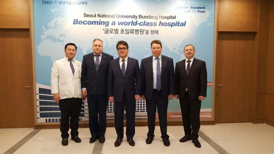 В Южной Корее сегодня, 24 октября 2017 года, вице-премьер правительства Калининградской области Александр Шендерюк-Жидков в составе российской делегации посетил госпиталь «Бундан» Сеульского национального университета, где встретился с его президентом.
