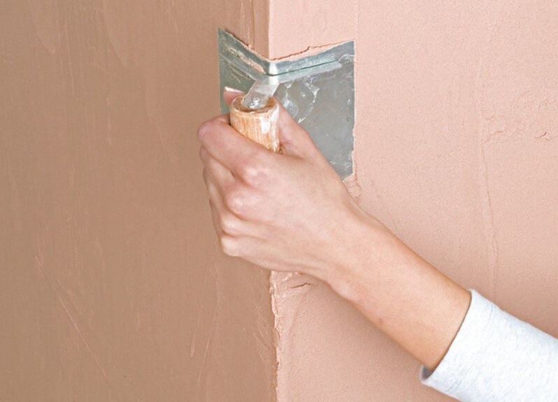 Углы легко подвергаются разрушению — они крошатся, отламываются, отбиваются. В таком виде они выглядят небрежно и портят весь внешний вид комнаты. Можно исправить ситуацию использовав минимум материалов и средств? Отвечаем: можно! Вам только нужно вооружиться необходимыми инструментами и следовать нашей инструкции. Что вам потребуется: Что нужно делать: Шаг № 1 Измерьте повреждённый участок стены и отмерьте отрезок деревянной рейки. Он должен полностью закрывать разрушенную область угла. Шаг № 2 Приложите рейку к участку и прибейте её гвоздями. Шаг № 3 Возьмите универсальную шпаклёвку (её можно купить в любом строительном магазине) и нанесите её на повреждённую область. Прибитая ранее рейка будет исполнять роль направляющей. Шаг № 4 Дождитесь полного высыхания шпаклёвки и хорошо зашкурите это место. Шаг № 5 Теперь повторяем проделанную операцию с другой стороны угла. Крепим рейку в том самом месте, где высохла штукатурка. В результате у вас должен получиться острый угол с