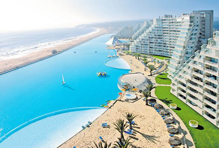 Сан Альфонсо дель Мар (San Alfonso del Mar) — частный курорт, который находится в Algarrobo, Чили. Курорт знаменит своим самым большим бассейном в мире. Бассейн был открыт в декабре 2006 года. Его длина составляет один километр, а площадь равна 7.7 гектаров, бассейн вмещает 250 миллионов литров морской воды. Этот шокирующий воображение открытый бассейн разработала чилийская компания Crystal Lagoons. Воду для него закачивают непосредственно с Тихого Океана, предварительно пропустив ее через систему очистки.
