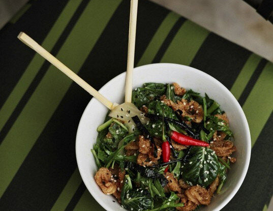 13. Жареный арахис - ¼ стакана Инструкция приготовления 1. Разогрейте гриль или мангал. 2. Разрежьте мясо на 2 куска и натрите 1 чайной ложки соуса чили с чесноком. 3. Обжарьте рис на хорошо разогретой сковороде до золотистого цвета. Охладите. Переложите в кофемолку и измельчите до состояния пудры. 4. Тем временем, выложите мясо на гриль и обжарьте с обеих сторон до готовности, примерно по 4 минуты. 5. В небольшой миске смешайте сок лайма, коричневый сахар, рыбный соус и оставшийся соус чили. 6. В большой миске смешайте тонко нарезанный огурец, салатные листья, мелко нарез