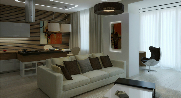 Семейное положение клиента дизайнерской студии «IZUMOFF» могло измениться в любой момент. Перед дизайнером Глебом Изюмовым была поставлена задача – приспособить типовую однушку к нуждам будущей семейной пары. Сведения о квартире: однокомнатная квартира в доме серии 52-53-АС площадью 66 кв. м на 6-м этаже нового 10-этажного кирпичного элитного дома в г. Томске. Владелец квартиры: мужчина средних лет с перспективой на создание семьи. Пожелания клиента: создать удобное жилье для проживания семейной пары. Дизайн интерьера однокомнатной квартиры согласно пожеланиям заказчика был выполнен в свободном современном стиле. В итоге получился максимально функциональный интерьер, изысканный, но лишенный пафоса, с множеством неординарных решений. В проекте использованы самые современные и экологически безопасные отделочные материалы, уникальная, изготовленная на заказ мебель. Особое внимание уделено системе освещения помещений (с учетом их назначения), позволяющей создавать различные световы