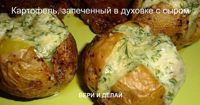 В середину каждой картошки помести сырный шарик. Поставь картофель в разогретую духовку на несколько минут — и