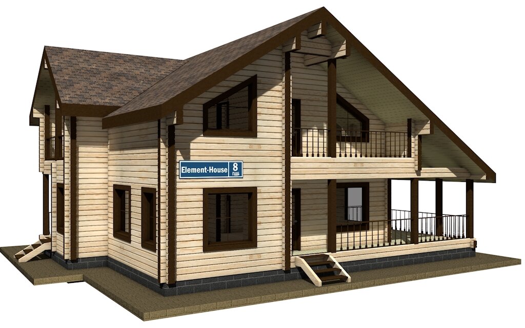 Проект современного дома из клеёного бруса с просторной террасой и вторым светом