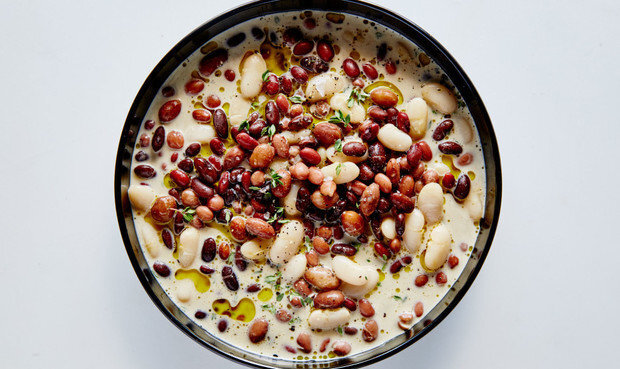 - Смешать фасоль, бульон, тимьян в средней кастрюле. Поставить на средней огонь и довести до легкого кипения.