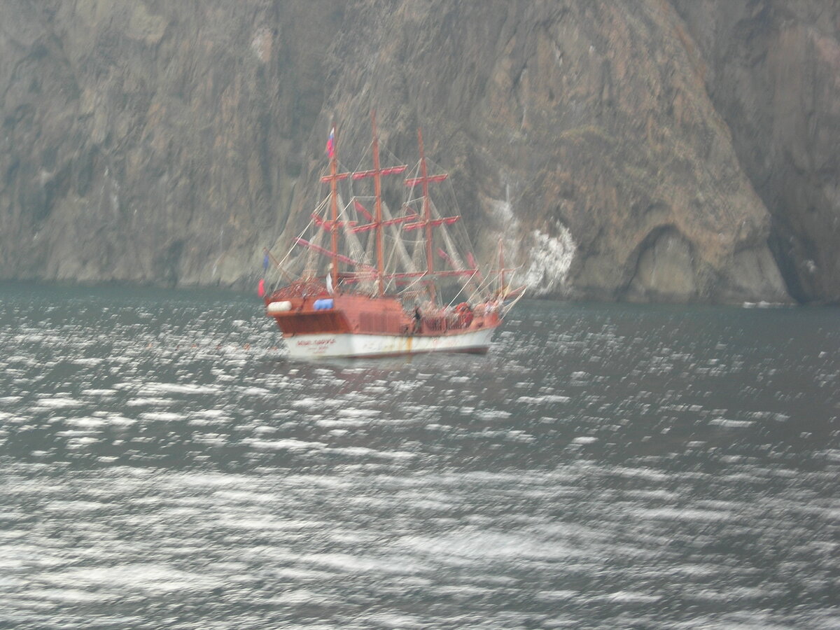 На следующий день мы решили отправиться в морское путешествие на теплоходе вдоль крымского побережья. Наверное каждый, кто побывал в Крыму не мог отказать себе в удовольствии морской прогулки вдоль побережья. Во-первых это прекрасный отдых после суеты автопробега и пеших прогулок по музеям и достопримечательностям. Во-вторых - это изумительные красоты моря, гор и чистого неба. Дельфины резвились, играя наперегонки с теплоходом и неизбежно побеждая его в соревновании на скорость. Чайки проносились где-то в стороне, не атакуя нас и не доставляя неудобств. Волны ласково плескались о киль корабля, завязываясь в тугую косичку за кормой. Мимо проплывали корабли, теплоходы, парусники и рыбачьи лодки. Мы пили сок и вдыхали морской бриз. Всё было прекрасно! Это - я А это - мой муж.