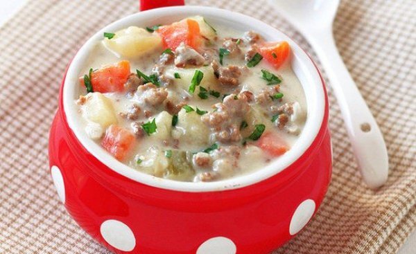 Густой, наваристый суп с обжаренным говяжьим фаршем вместо привычных фрикаделек.