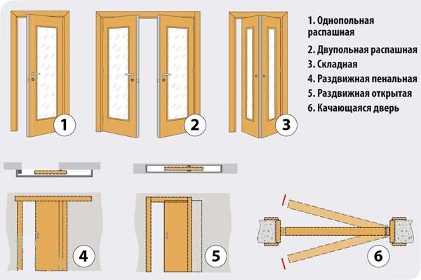 Решая различные задачи, разработчики дверных конструкций создают двери, которые отличаются по своей конфигурации и способу открывания. Наибольшее распространение получили межкомнатные двери следующих типов: