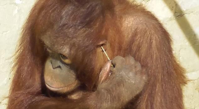 Мы часто недооцениваем способности наших братьев меньших. Особенно - обезьян. И очередной орангутан удивляет публику, демонстрируя свое умение ухаживать за своей внешностью не хуже многих людей. А может быть, и лучше... Не все же столь щепетильно относятся к своей внешности. Вот эта самка по кличке Спрут из зоопарка английского города Дадли довольно искусно использует палочки для чистки ушей. По прямому их назначению. Смотрите, она чистит уши так, словно это обычное дело для обезьяны! По словам сотрудников зоопарка, научить это животное новым навыкам не составляет большого труда. Ведь Спрут все воспринимает как увлекательную игру. К тому же именно эти обезьяны, как считают ученые, ближе всего к человеку по уровню интеллекта.