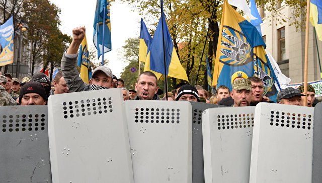 Столкновение протестующих с полицией во время митинга украинской оппозиции перед парламентом в Киеве. 17 октября 2017