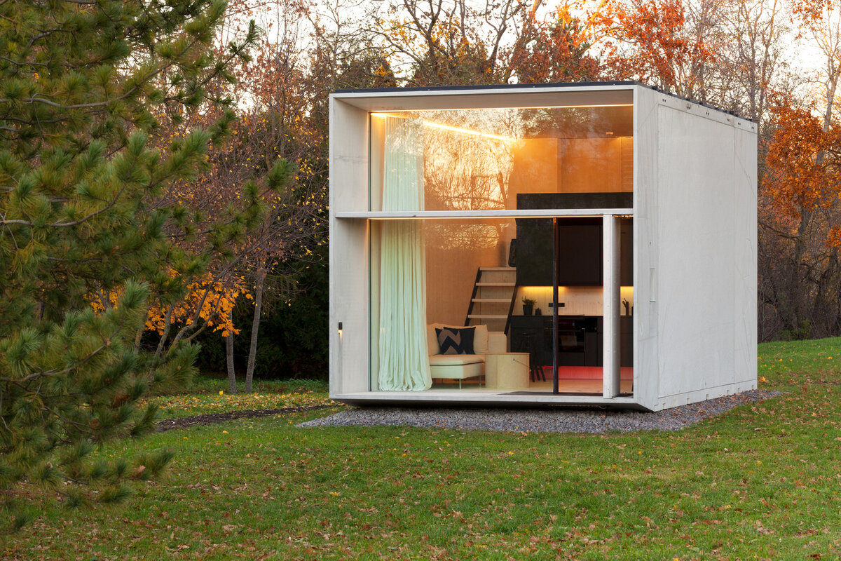 Эстонская студия Kodasema разработала малогабаритные модульные дома, которые могут устанавливаться в любых, самых неожиданных местах, повышая привлекательность даже временно заброшенных городских пространств. Изящные микроединицы создают комфортабельные помещения, которые можно использовать для жилья или бизнеса — в качестве отелей, кафе, студий и общественных зон. Дома строятся из тонких композитных панелей, сделанных из бетона с внешней стороны и из дерева изнутри, с вакуумной теплоизоляционной прослойкой между ними. Эта комбинация материалов создаёт прочный и долговечный экстерьер и удобный интерьер. Передний фасад представляет собой четырёхслойную стеклянную стену с небольшой террасой и бетонным солнцезащитным экраном. В интерьере архитекторы используют CLT-панели, сделанные из мягкой древесины ели. Отделанное натуральными маслами и восками, дерево становится дружелюбным как по отношению к людям, так и к окружающей среде. Бетон, который применяется в конструкциях, в 3 раза прочнее