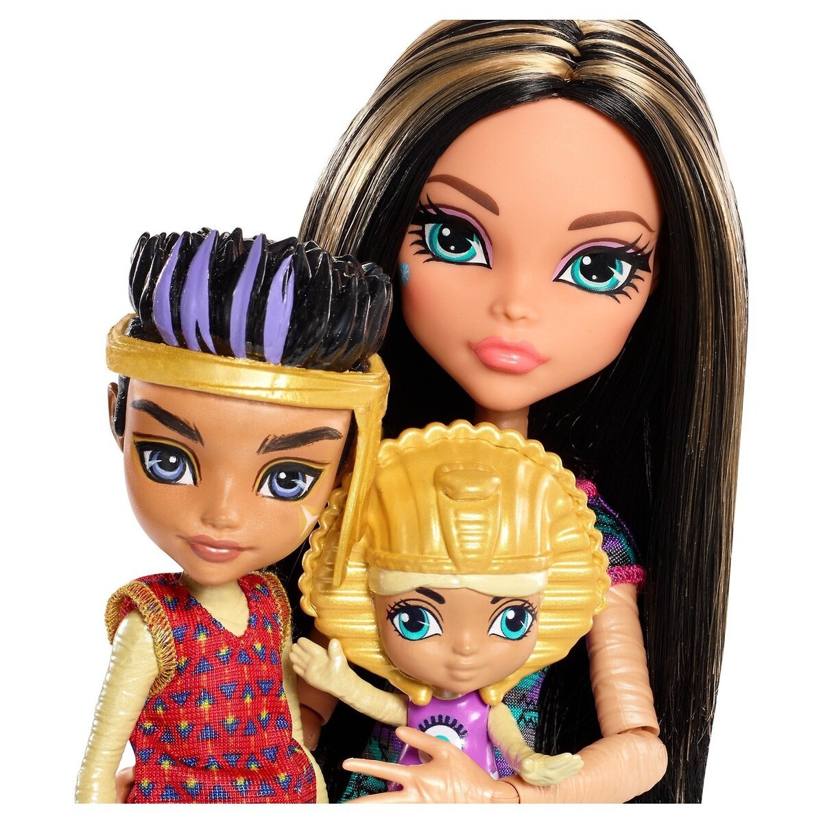Семья Клео де Нил включает Фарру, Люкса и Сэнди де Нил. Давайте знакомится с младшими представителями семейства Клео, тем более что уже анонсирован набор кукол! Monster Family of Cleo de Nile — настоящее "монстрическое" семейство. Здесь все — египетские мумии! Таким образом, теперь мы знаем, что у Клео в семье есть: двойняшки Lux и Pharrah, малышка Sandy ("говорящее" имя, напоминающее о песках Египта), а старшая сестра — Нефера. Итого — уже пятеро! Вот такая компания: Ещё фото: https://www.toybytoy.com/doll/The-family-Cleo-de-Nile-Monster-High