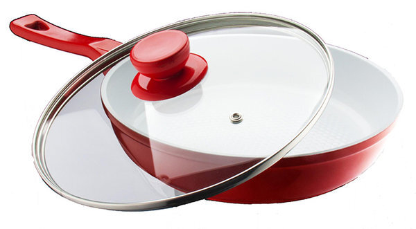 Сковороды с керамическим покрытием относительно недавно появились на прилавках магазинов и сразу привлекли внимание домохозяек. Этот новый, уникальный тип сковородок имеет массу преимуществ: тепло распределяется равномерно, долго держится температура, отличные антипригарные свойства и главное, она совершенно безопасна для здоровья. В таких сковородах хорошо и жарить, и тушить. Также, в них можно долго хранить пищу, не опасаясь, что она вступит с покрытием в химическую реакцию. Сковородам с керамическим покрытием не страшна коррозия. Керамическое покрытие – это специальное прочное стекло с антипригарным покрытием. На сковороду оно наносится с помощью лазера или приклеивается к посуде специальным составом. Но с приклеенным покрытием посуду лучше не покупать. Это говорит о недолговечности сковороды. А на ощупь клееный слой тоньше лазерного. Качественное керамическое покрытие не боится царапин, при приготовлении можно пользоваться металлическими вилками и лопатками. Пища в такой сковороде