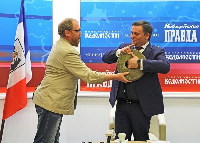 - У меня небольшой подарок, - сказал он, направляясь к губернатору и протягивая ему большой точильный камень весом около пуда. - Теперь можно сказать, что Андрей Никитин принял Новгородскую область с каменными жерновами, а собирается построить здесь Кремниевую долину.