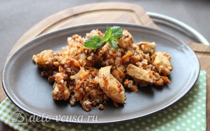 Гречка по-купечески с курицей – сытное и вкусное блюдо для всей семьи. Оно очень простое в приготовлении, не требует много времени, а на вкус не уступает более сложным блюдам. Вы несомненно еще не один раз будете готовить его для всей семьи. Варианты приготовления гречки по-купечески Гречку по-купечески готовят в казане, на сковороде или в мультиварке. Для этого блюда чаще всего выбирают говядину или свинину, мы же будем готовить гречку с курицей, точнее с куриным филе. Впрочем, если вы приготовите гречку с другим мясом, тоже будет вкусно - проверено на личном опыте :) Ингредиенты: Гречка - 1 ст. Куриное филе - 500 г Лук репчатый - 1 шт. Морковь - 1 шт. Томатный сок - 50 мл Лавровый лист - 2 шт. Черный перец молотый - 1 щепотка Соль - 2 щепотки Душистый перец - 4 горошины Масло растительное - 2 ст. л. Вода - 2 ст. Приготовление: 1. Репчатый лук нарезать на кусочки. 2. Морковь натереть на терке. 3. Лук и морковь обжарить. 4. Куриное филе нарезать средними кусочками и о