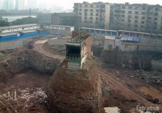 Очень часто желание застройщика не совпадает с желанием людей живущих на участке, который планируется застроить. В этом случае, в нашей стране все просто — имущество владельца участка поджигается или же хозяин участка запугивается до такой степени, что все претензии к застройщику как-то сами-по-себе неожиданно отпадают. В более цивилизованных странах, как правило, обе стороны договариваются и конфликт разрешается мирным путем — владельцу попросту компенсируют стоимость участка либо предлагают аналогичный участок и жилье в другом месте. Но есть случаи, когда такие конфликты перерастают в нечто маразматическое и шокирующее. Как пример — земельные конфликты в Китае. Китайцы делают проще: упрямых хозяев земли, которые никаким образом не планируют идти на уступки застройщику, просто игнорируют и начинают стройку. Со временем стройка окружает