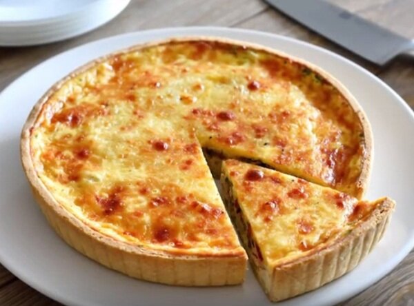 Пирог с курицей и южными овощами (перец, оливки) – это привет от венгерской кухни. Нежное мясо куриных грудок, сладкий болгарский перец и оливки с зеленью заливают сметанной заливкой с яйцами и быстро запекают в духовке. Плюсом такой выпечки является быстрота ее приготовления: основа готовится заранее из соленого песочного теста. Также заранее подготавливаются все ингредиенты для начинки. А в нужный момент остается только быстро все нарезать, загрузить в основу, залить заливкой, а потом запечь. По итогу получится мягкий, нежный, ароматный, сытный пирог с мясом и овощами. Полноценный ужин или завтрак. Еще его хорошо брать на работу или как дорожный перекус – замечательная закуска! Ингредиенты предварительно приготовленная корочка для пирога; 2 небольшие отваренные или запеченные куриные грудки (около 500 г); 1 красный сладкий перец, запеченный в духовке, без кожуры; 20-25 консервированных маслин; 4 яйца; 1 стакан (250 г) сметаны; 2 ст. ложки рублен