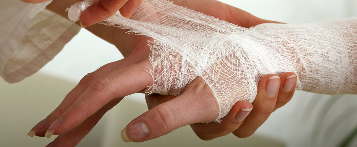Накладывая компрессы, используют только бинт или марлю, но не вату. Забинтовывать ожог надо обязательно, чтобы не занести в рану инфекцию.