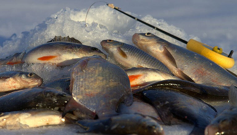 Плотва – самая распространённая добыча среди рыболовов-любителей в средней полосе на российских водоёмах. Зимняя рыбалка на плотву ещё желанней, так как зимой вся плотва попадается с икрой, достаточно крупная и достигает в некоторых местах 25-30 см, а вес некоторых представителей может достигать 1,5-2 килограммов. Крупная плотва держится стаями и обитает на глубинах от 6 до 10 метрах, выходя на кормёжку на отмели летом, а зимой предпочитает держаться ближе к проталинам, где вода насыщена кислородом. Лучшая снасть для ловли плотвы зимой – это обычная мормышка, которая не требует дополнительного грузила. Прикормленное место опытные рыбаки держат в секрете и при удачной погоде, улов может достигать до 100 хвостов в день. Идеальная приманка для плотвы зимой – это обычный мотыль, который можно купить в специализированных рыболовных магазинах. Хорошо она идёт на дождевого червя, опарыша, но зимой достать такую приманку сложнее. Техника ловли плотвы такая же, как и на окуня: снасть с на