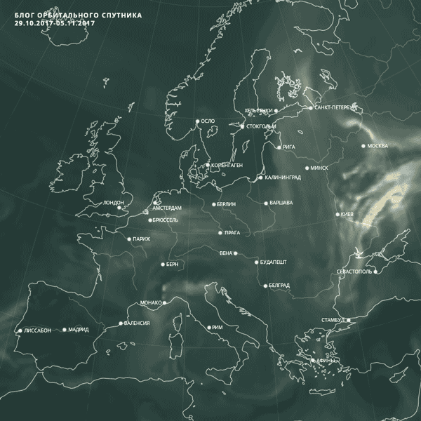 Анимация движения СО в атмосфере над Европой 29.10-05.11