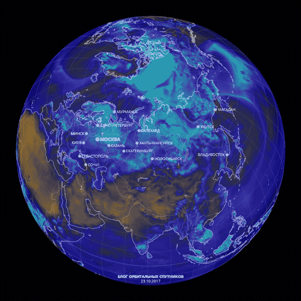 Влажность воздуха 6-7 ноября. Вид со спутника
