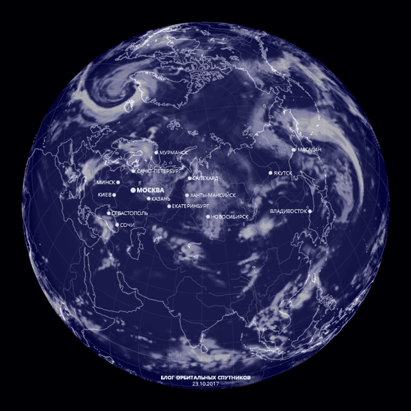 Содержание влаги в облаках 6-7 ноября. Вид со спутника