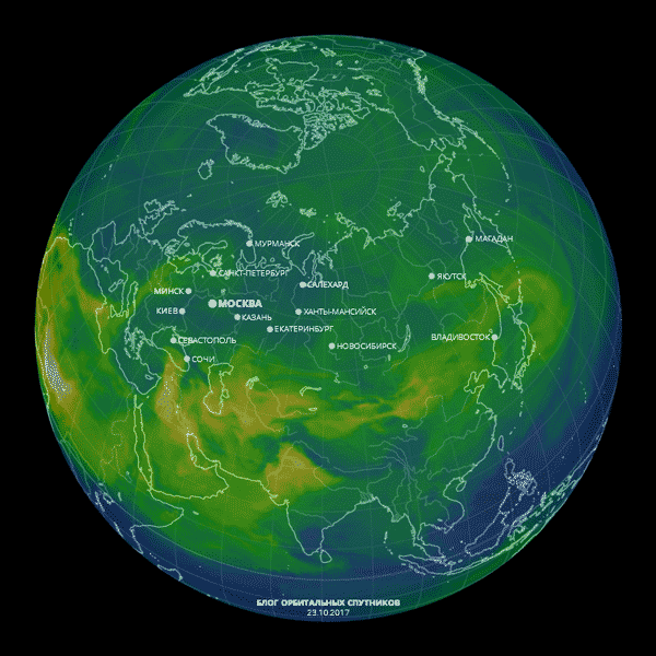 Плотность пыли в атмосфере 6-7 ноября. Вид со спутника