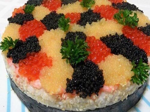 - по 70 грамм икры трех видов (у меня щучья натуральная,щучья крашеная черным чаем, красная) Рис для суши отвариваем согласно инструкции на упаковке.