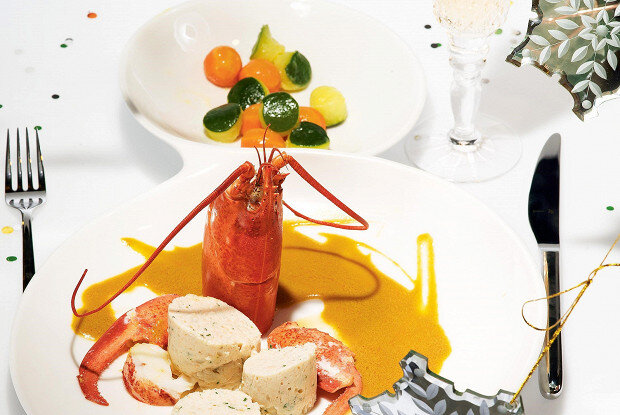 19. Перец черный молотый - по вкусу Инструкция приготовления 1. Лобстеров сварить в подсоленной воде со стеблями петрушки, укропа и лавровым листом. Извлечь мясо, а весь хитин сгрузить в противень и поставить на двадцать минут в духовку, разогретую до 250 градусов. 2. На масле обжарить мелко нарезанные сельдерей, шалот и чеснок. Панцири покромсать тесаком или ножницами и добавить к овощам. Влить коньяк, тушить пять минут. Добавить эстрагон, бульон и варить двадцать минут. Измельчить содержимое сотейника в блендере, процедить через сито,