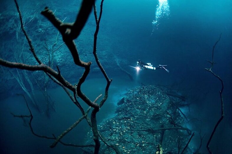 В Мексике, под полуостровом Юкатан, находятся сеноты — так называют подводные пещеры, протянувшиеся на тысячи километров (всего территория исследований включает 145 тысяч квадратных километров в трёх штатах: Кампече, Юкатан и Кинтана-Роо). Считают, что эти уникальные образования размыты водой в течение тысячелетий, и они хранят множество тайн. Мексиканские географы и антропологи путешествуют по сенотам с целью создать их полные трёхмерные карты. Это непросто, так как сеть пещер очень запутана, большая часть из них заполнена водой частично или полностью. В пещерах уже обнаружены останки как людей, так и различных животных — среди них есть вымершие и живущие поныне. Например, гомфотерий — исчезнувших древних хоботных животных, саблезубых тигров и гигантских ленивцев — они тоже жили в этих краях тысячелетия назад. Есть останки и современных животных. Следы человеческого пребывания учёные связывают с цивилизацией Майя, о которой в ходе экспедиций надеются узнать больше.