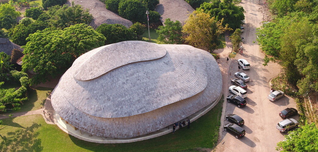 В Таиланде местная компания Chiangmai Life Architects построила для школы Panyaden International School спортивный зал полностью из бамбука. Дизайн сооружения, вдохновленный цветком лотоса, впечатляет своим необычным и одновременно гармоничным внешним видом. Бамбуковый стадион предназначен для футзала, баскетбола, волейбола, бадминтона, а общая площадь зала составляет 782 кв. метра. Спортивный зал был спроектирован с учетом всех современных требований к безопасности и надежности школьных построек в местных климатических условиях. Инновационный конструктивный дизайн основан на недавно разработанных сборных бамбуковых фермах шириной более 17 метров, которые полностью без стальных арматур или соединений. Эти фермы были предварительно собраны на месте стройки и установлены с помощью крана. Подробнее...